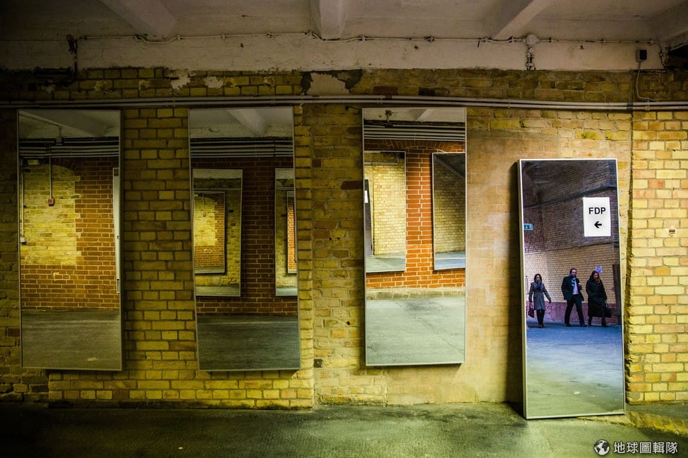 人們的身影從鏡子中反射出來,當地的自由民主黨(FDP)即將舉行黨員大會