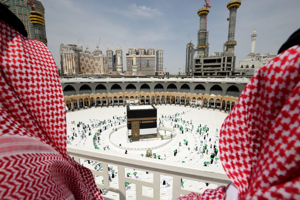 在聖城麥加,穆斯林們開始逆時針繞行位於大清真寺中央的卡巴天房,他們要先繞行七圈,完成後才能繼續朝聖之旅。