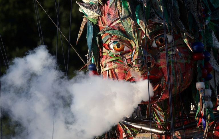 在即將舉辦奧運的東京,高十公尺的大型人偶「MOCCO」來到當地為奧運助陣,它也帶來精彩的歌曲表演傳遞日本不屈不撓的精神。