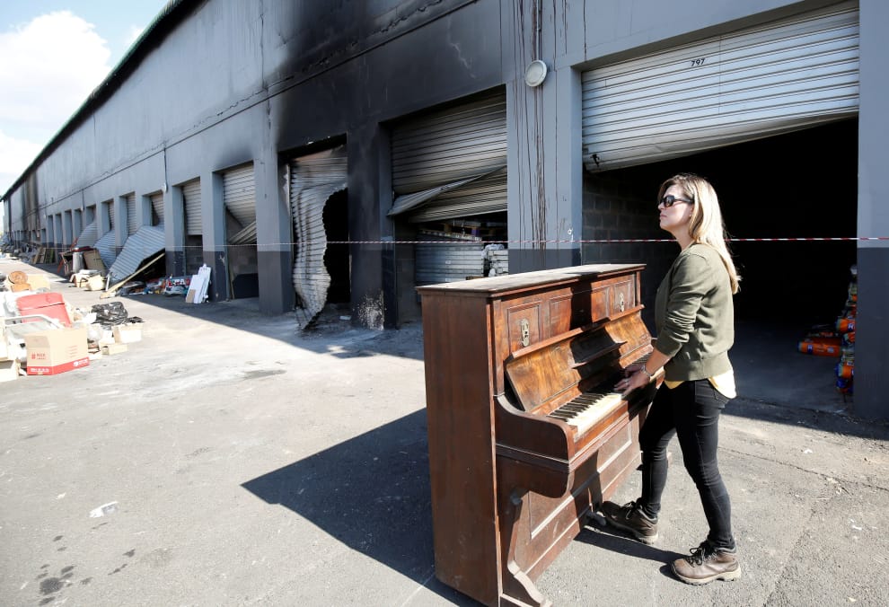在約翰尼斯堡北邊的大型郊區瓦特瓦爾(Waterval),鮑斯(Jenny Bowes)在被不肖人士破壞的倉庫前彈琴,她的表演在社群媒體上瘋傳。而她身後的倉庫之所以會被破壞,是因為連日來不肖人士仗著前總統祖瑪(Jacob Zuma)被關、社會陷入混亂之際,放火破壞和洗劫各大商家,其中就包含這座倉庫。