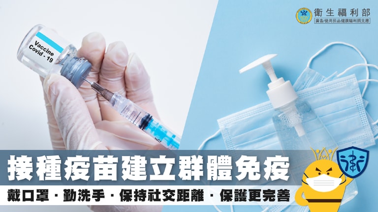 接種COVID-19疫苗能有效避免重症及死亡,即便已經施打疫苗,平時仍要記得戴口罩、勤洗手、保持社交距離,做好個人防護措施就是防疫最大助力。