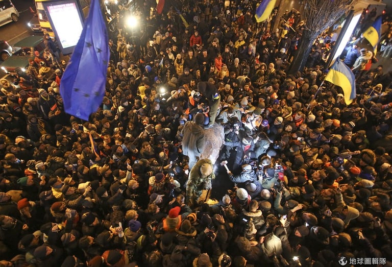 ​前面的問題,或許就是烏克蘭總統最近糾結很久難以回答的問題,當地現在就因為他否決與歐盟貿易合作的契機,陷入大規模的示威抗議中。上周末時,烏克蘭當地就出現數萬民眾擠上廣場,高喊要總統下台的口號。