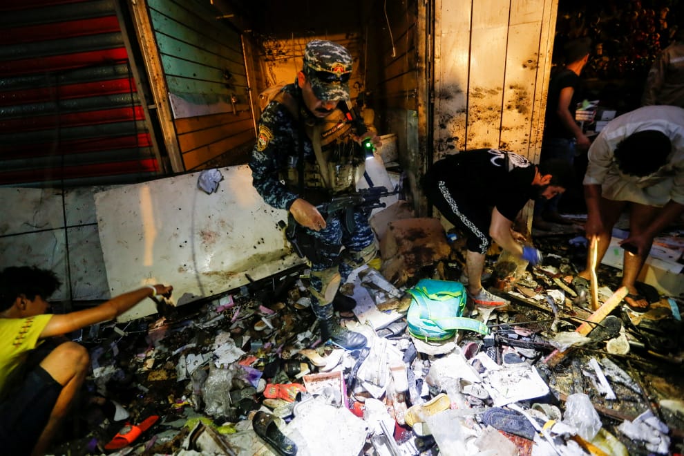 在首都巴格達的薩達爾城(Sadr City),一名伊拉克安全部隊的成員正在檢查爆炸現場。