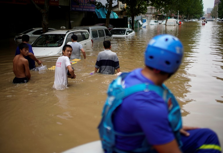 在最近北京市的一場暴風雨期間,當局特地警告民眾待在家、不要任意出門,但同樣的情形在鄭州,周二市政府並沒有因暴雨而宣布停班或是停課,一切依舊如昔。