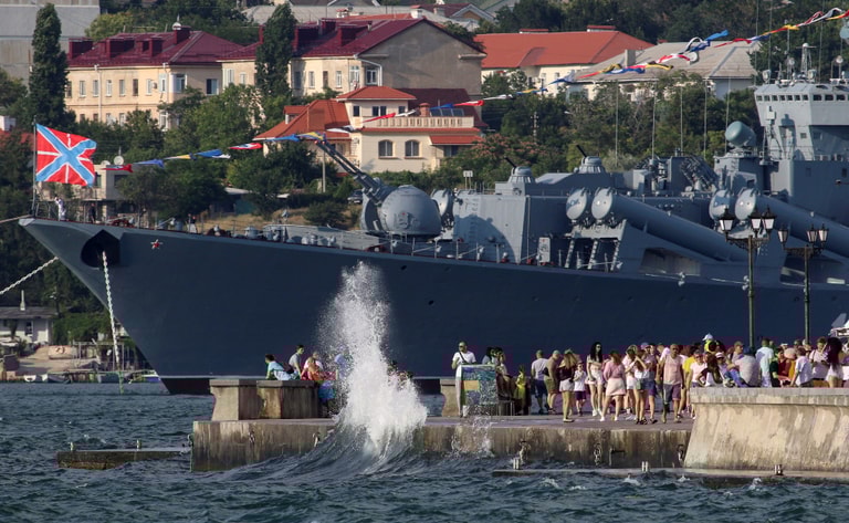 在克里米亞半島面對黑海的塞凡堡市(Sevastopol),民眾來到港口欣賞俄國軍艦,準備迎接本月 26日舉辦的俄國海軍日(Navy Day)。