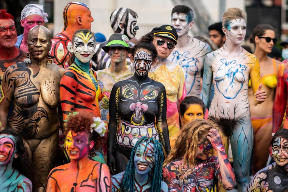 在美國紐約市的華盛頓廣場公園(Washington square park),人體彩繪愛好者們在這天一起來到現場,參加一年一度的紐約人體彩繪節(NYC Bodypainting Day)。