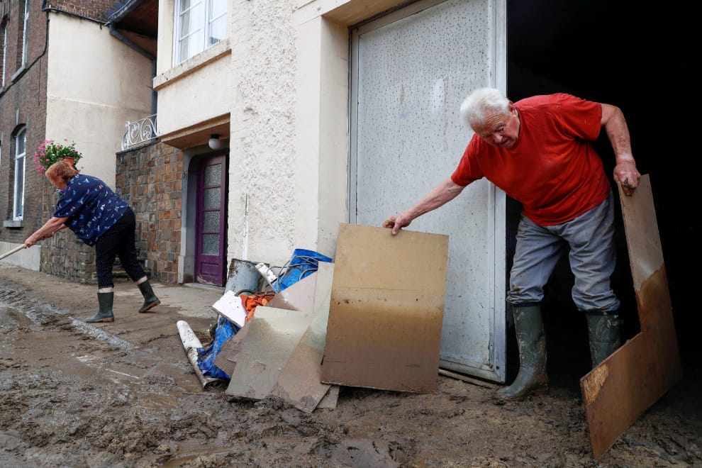 在比利時南部的迪南市(Dinant),豪雨所致的水災退去後,家家戶戶陸續開始清理家園。