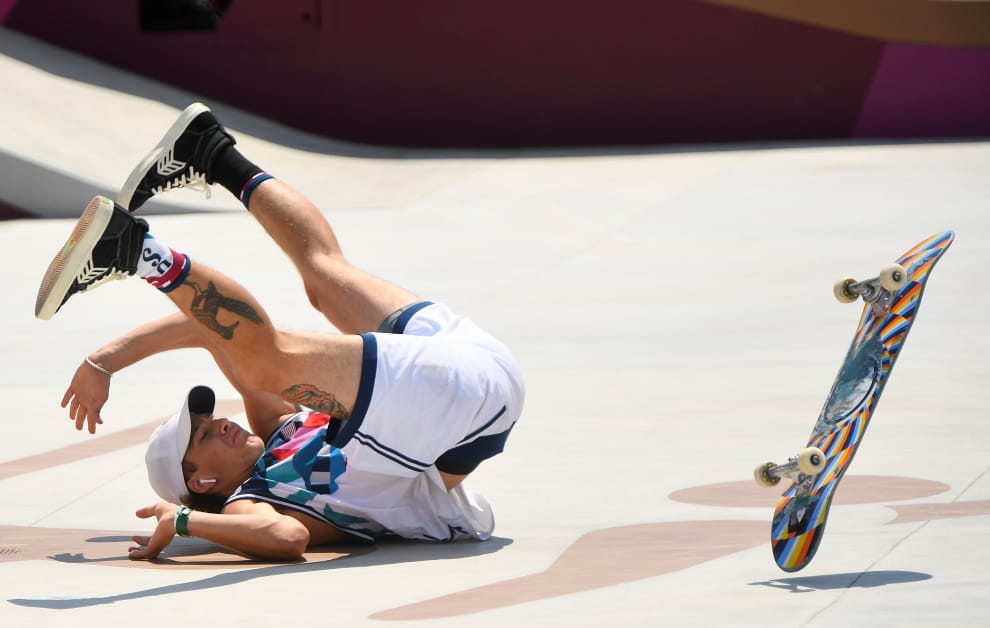 在日本首都東京的有明都市運動公園,美國滑板好手伊頓(Jagger Eaton)不慎在東京奧運男子街頭滑板的賽事上摔了一跤,而他最終也與滑板運動在奧運史上的首面金牌擦身而過。