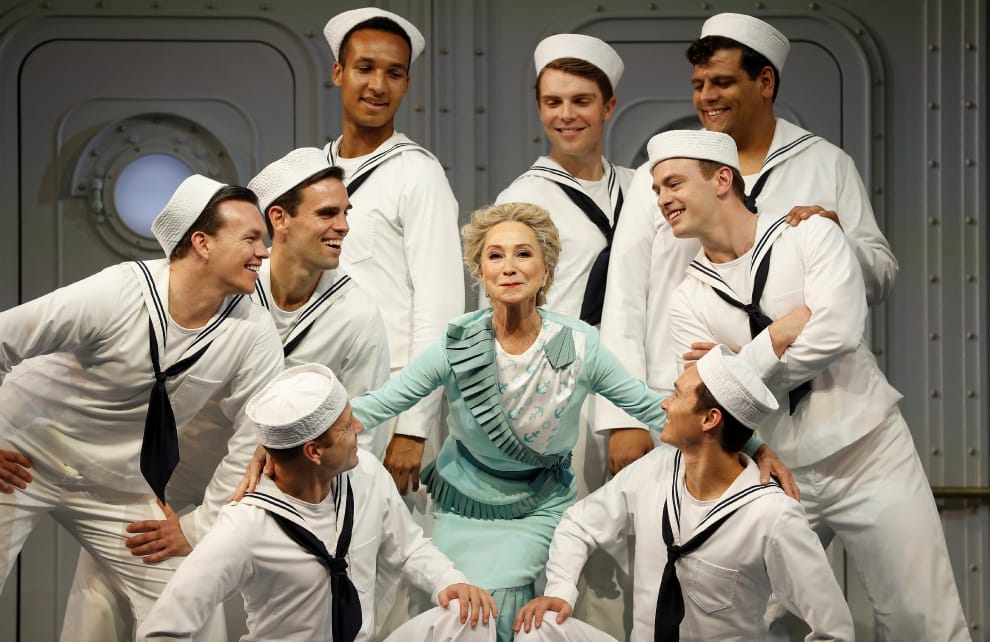 在英國倫敦的巴比肯藝術中心(Barbican Centre theatre)裡,英國女演員肯達爾(Felicity Kendal)和其他出演舞台劇《海上情緣》(Anything Goes)的演員們一起在舞台上擺了個pose,好讓台下媒體們有餘裕拍照。