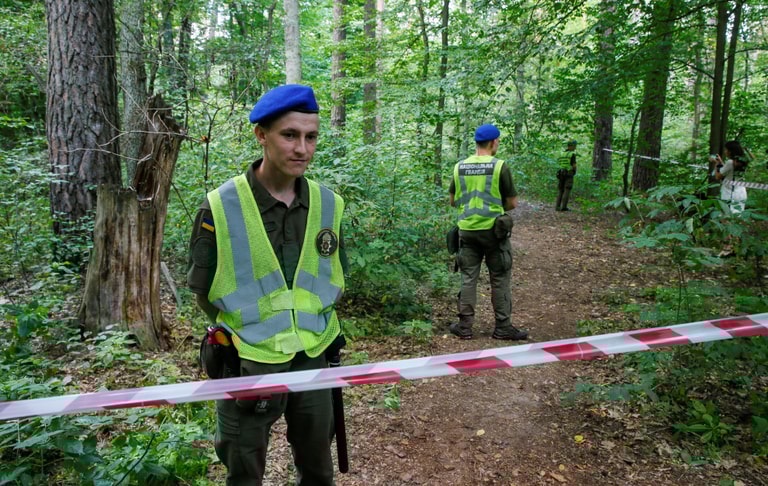 圖為烏克蘭警方釋出的案發現場照。烏克蘭國家警察局長克雷緬科表示,席修夫的屍身上可以看到鼻子、左膝和胸部有輕傷。