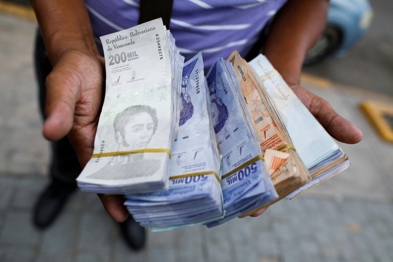 在委內瑞拉首都卡拉卡斯(Caracas),隨著委內瑞拉央行大筆一揮,宣布將於今年 10月1日發行新鈔,一舉從現行委內瑞拉鈔票「玻利瓦」(bolivar)上減去六個0,圖中這位公車司機助理手上鈔票的價值也將一落千丈。