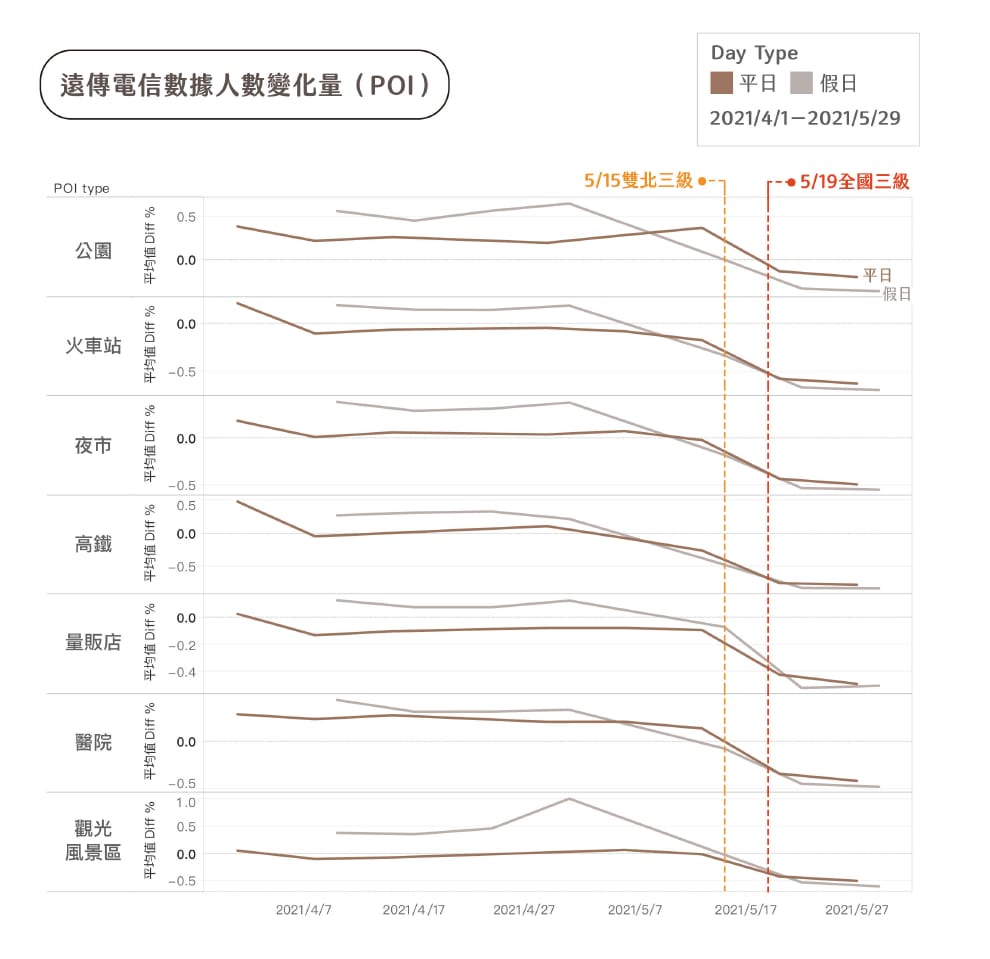 除了觀測熱點場所,臺灣疫情期間的人流移動有什麼特徵?