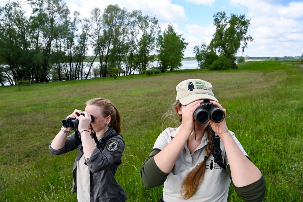 除了希望日後有更多科學家投入研究鳥兒偷拔其他動物毛髮的行為,波洛克也希望這份研究能向科學家展現其他資訊來源的潛在價值。圖為今年 5月兩名德國愛鳥人士。