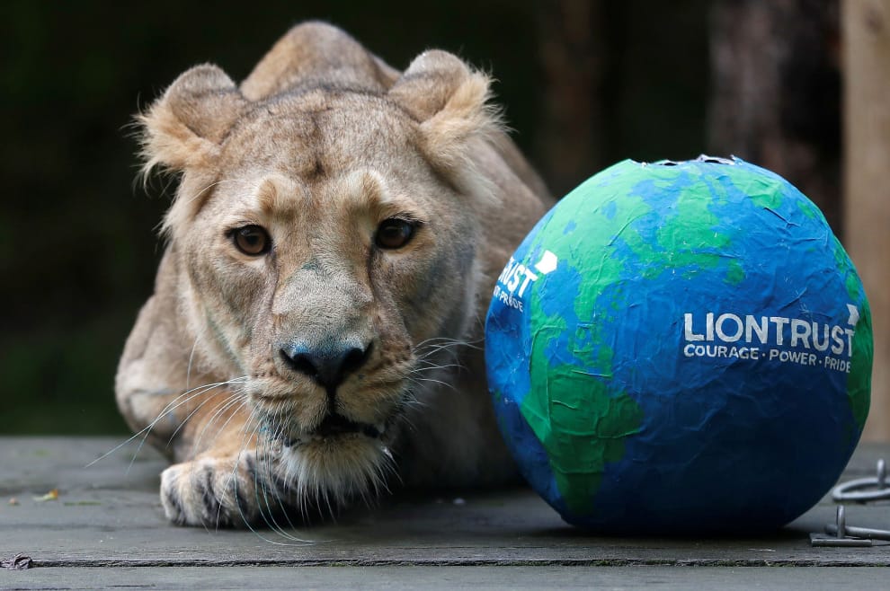 為了紀念即將於 10號到來的世界獅子日(World Lion Day),歷史悠久的倫敦動物園(ZSL London Zoo)特地舉辦了一場拍照活動。畫面中,名為艾麗婭(Arya)的母亞洲獅和印著英國資產管理公司「獅子信託」(Liontrust)商標的地球合影。