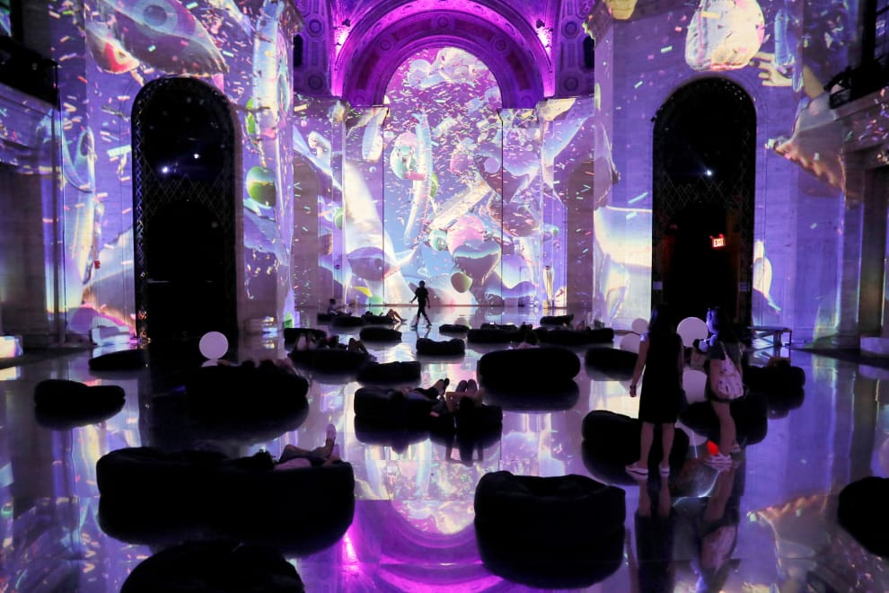 在紐約曼哈頓(Manhattan),沉浸式多媒體特展「SuperReal」提供了 360度的投影體驗,再加上現場的環繞音效,讓來訪的觀眾獲得身歷其境的超現實夢幻體驗。
