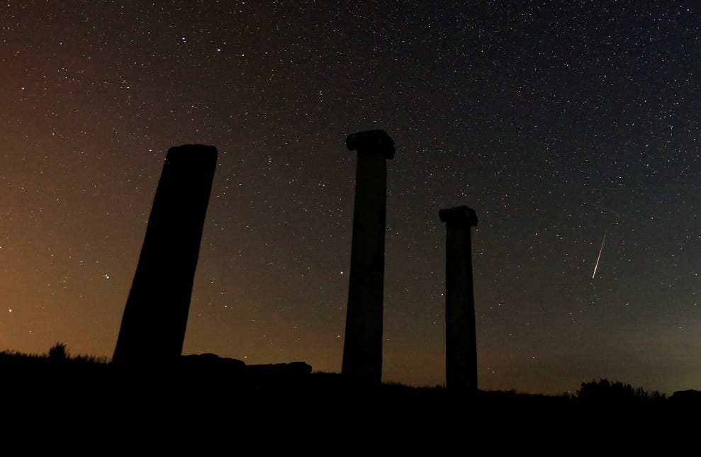 在北馬其頓東部,有著兩千多年歷史的古城斯多比(Stobi),其遺跡至今仍靜靜地矗立在廣袤的原野上。畫面攝於當地深夜,在繁星閃爍之際,一顆流星劃過了夜空。