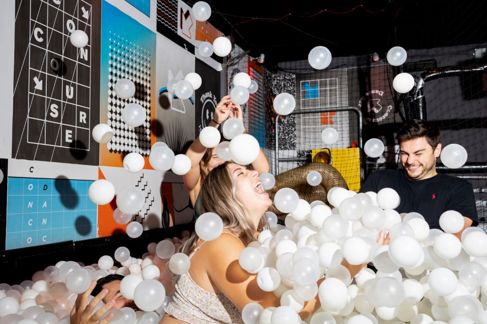 在賓州(Pennsylvania)費城(Philadelphia),來到夜店「Concourse Dance Bar」的顧客正在球池裡盡情玩樂,他們都是已經施打過COVID-19疫苗的人,必須向店家出示自己的接種證明才能進入店內。