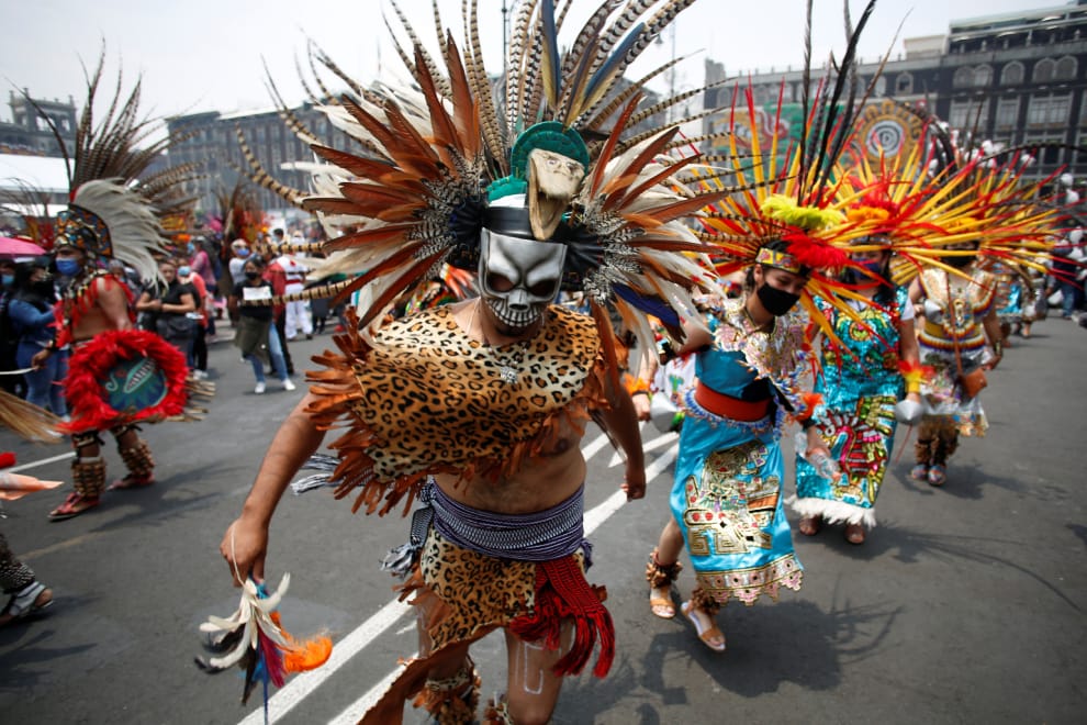 這天是特諾奇提特蘭陷落之日(Fall of Tenochtitlan) 500周年的紀念日。在首都墨西哥城(Mexico City)的市中心,穿著傳統服飾的民眾正於佐卡洛廣場(Zocalo Plaza)以舞蹈感懷這段令人悲傷的歷史。