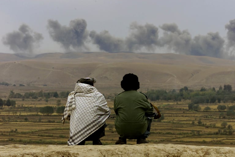 2001年9月11日,美國遭到了恐怖攻擊,在追緝主嫌蓋達組織(al-Qaida)首領賓拉登(Osama bin Laden)的時候,美國發現賓拉登就躲在阿富汗的山區、受到塔利班組織的庇護。在要求塔利班交出賓拉登遭拒後,美國以此為開戰理由前進阿富汗、推翻了塔利班政權,並且扶植了卡爾扎伊(Hāmid Karzai)政權,正式拉開阿富汗戰爭二十年的序幕。