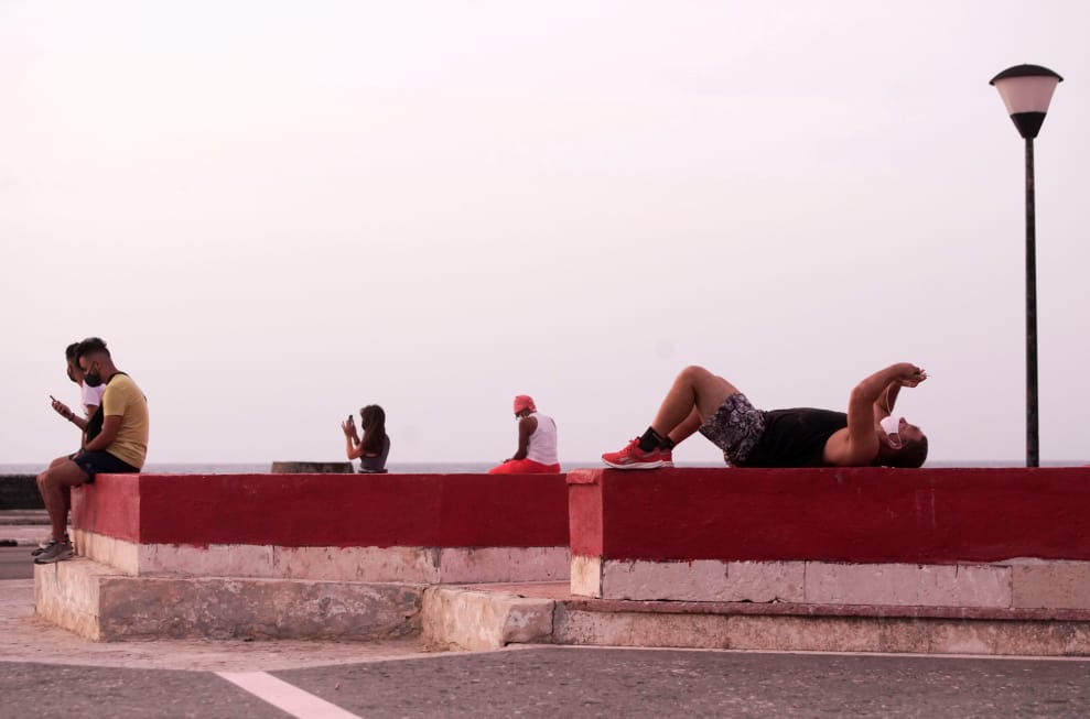 在首都哈瓦那(Havana)的某處,幾位民眾正悠哉地大滑手機,因為這裡有提供免費的公用熱點,其中一人甚至還躺了下來,專注地看著自己手中的螢幕。