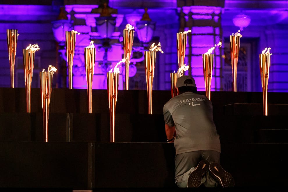 在 2020東京帕奧(Tokyo 2020 Paralympic)的點火儀式中,工作人員正將象徵著日本每個都道府縣的火把安置在典禮台上。2020東京帕奧將於本月 24號正式開幕,並在下個月 9號完成賽事。