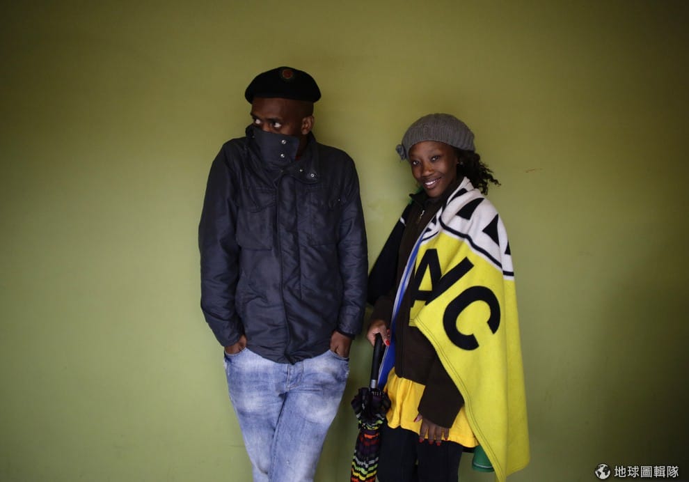 一對特地到約翰尼斯堡參加悼念曼德拉儀式的男女,約翰尼斯堡也是著名的足球之城