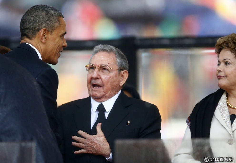 在紀念已逝曼德拉總統的悼念會上,美國總統歐巴馬與古巴總統卡斯楚罕見地互相打招呼,這個畫面對於已經對立超過半世紀的兩國來說非常難能可貴