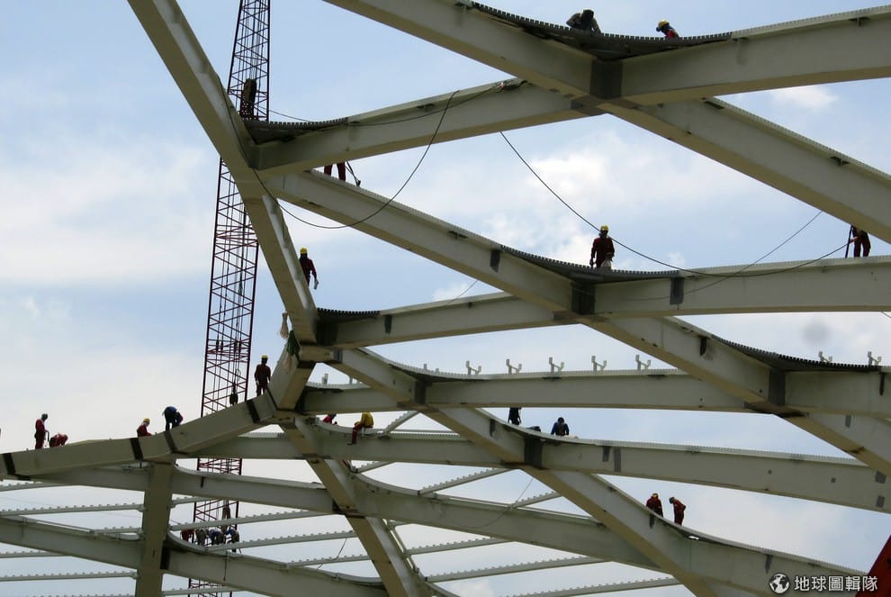 建築工人正忙著建造體育館(Arena Amazonia stadium)的屋頂,巴西即將在明年6/12-7/13舉辦世界盃足球賽(2014 FIFA World Cup)
