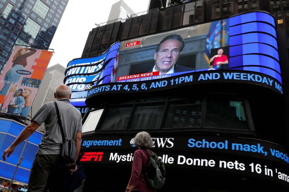 在紐約時代廣場的大螢幕上,可以看到紐約州長庫莫(Andrew Cuomo)在跟大家道別,這是他最後一天擔任州長,之後洲長大位將由長久以來擔任他副手的紐約州副州長霍楚(Kathy Hochul)接手,直到 2022年年底任期結束。