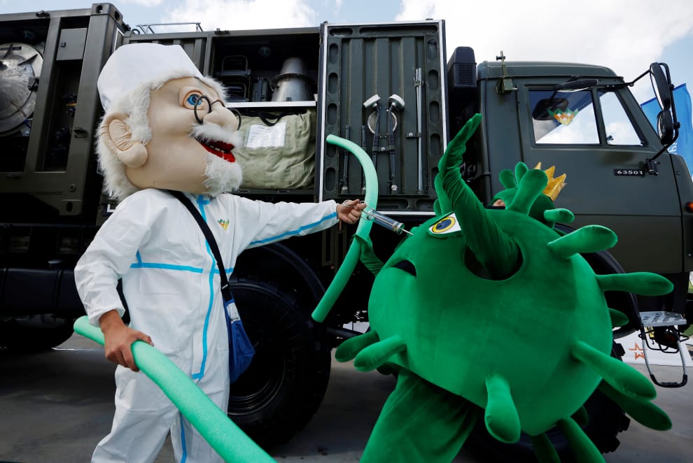 在莫斯科愛國者會展中心,當地正在舉辦國際軍事技術論壇「Army-2021」,在活動中出現了醫生力抗COVID-19病毒的橋段。