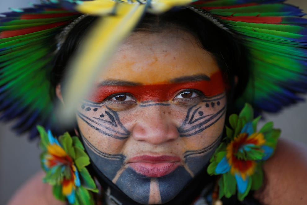在位於首都巴西利亞的國民議會前,巴西原住民穿著傳統服飾前來抗議當局土地劃界不公,利用公權力侵犯原住民原本的領土,他們也高聲疾呼要巴西總統波梭奈羅(Jair Bolsonaro)下台負責。