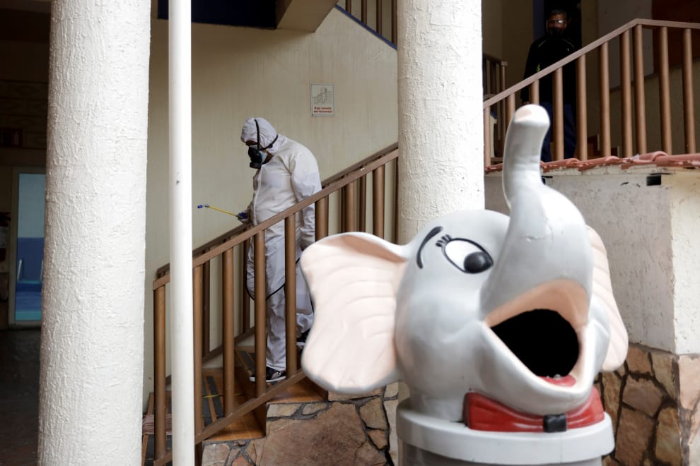 在埃卡提佩市(Ecatepec),今年 24歲的布恩迪亞(Luis Enrique Buendia)正在替一所學校消毒,準備迎接開學日的到來。
