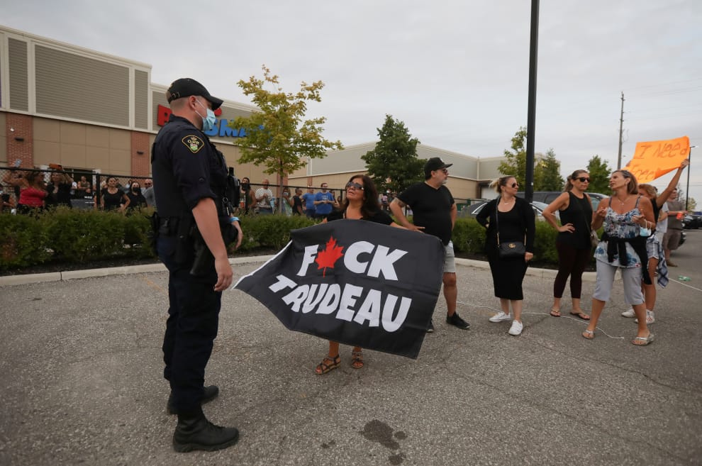 在安大略省博爾頓(Bolton),加拿大總理杜魯道(Justin Trudeau)臨時取消了造勢活動,特地前來抗議他的民眾手持印有「去你的杜魯道」字樣的旗幟和警方對峙。