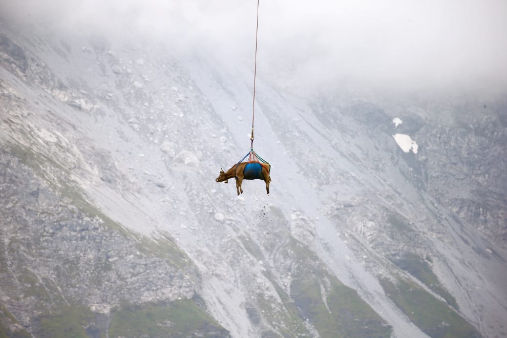 首圖故事:一架直升機正在阿爾卑斯山脈間運送牛隻......