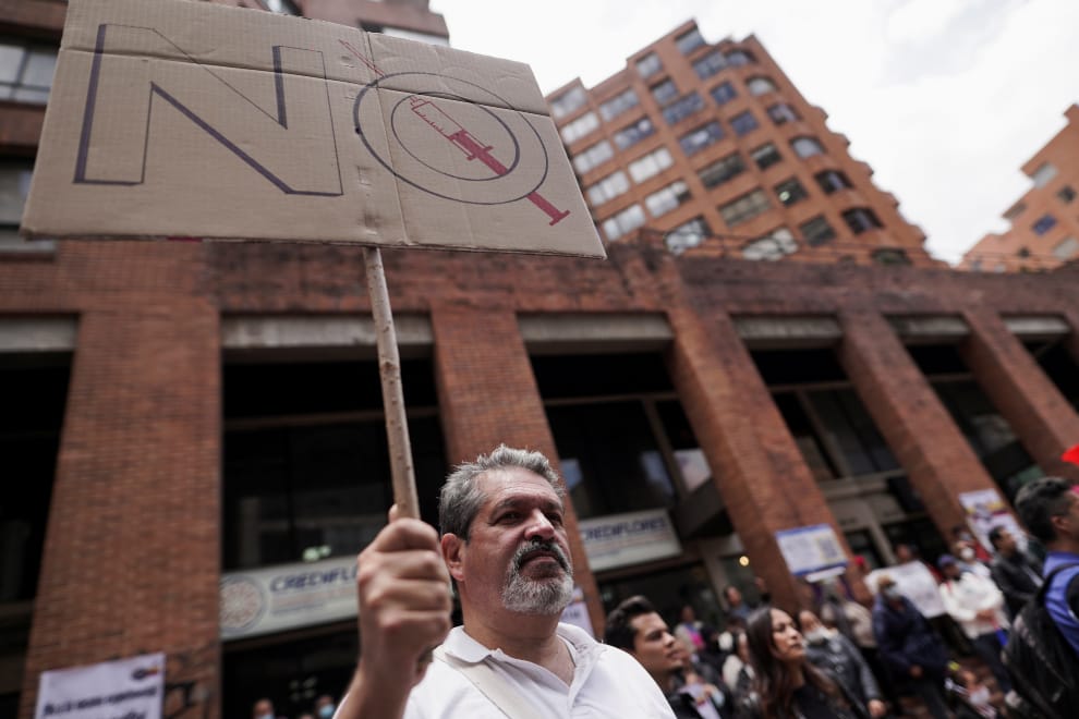 在首都波哥大,當地民眾發起了一場反對強迫接種COVID-19疫苗的抗議活動。
