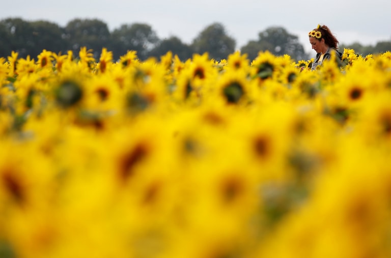 在位於西北部弗拉姆斯特德(Flamstead)小村莊的「跳出」農場(The Pop Up Farm),舉目所及全是一片太陽花,如此黃澄澄的美景也吸引大批民眾前來參觀。
