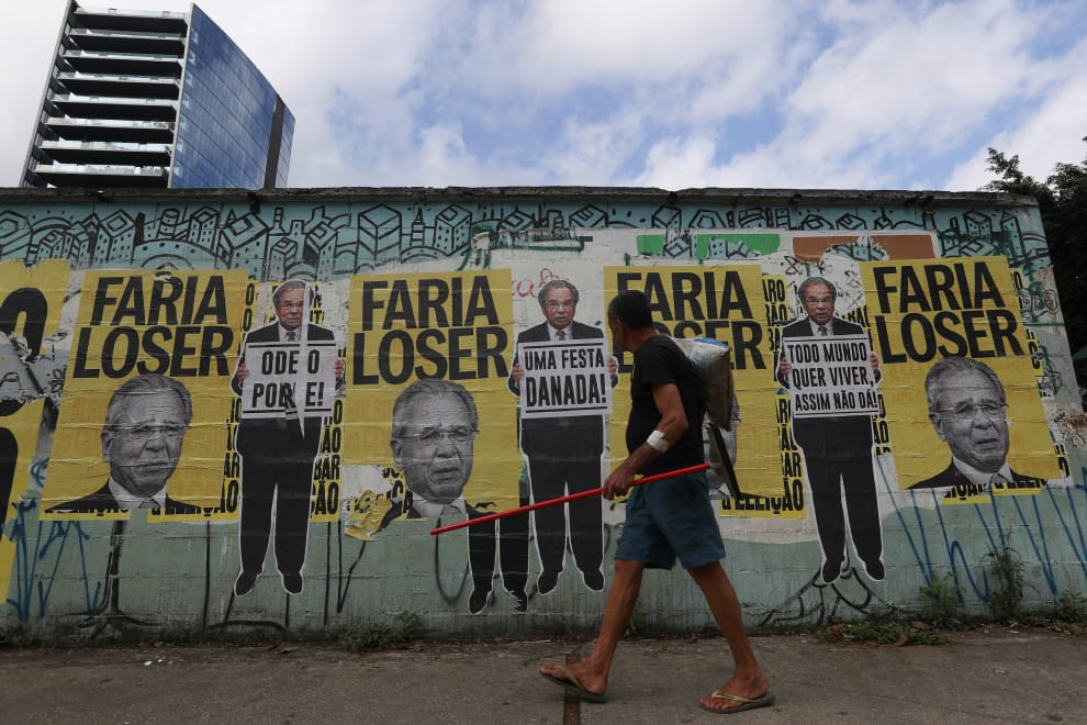 在南半球第一大城聖保羅(Sao Paulo)有「巴西華爾街」之稱的法利亞利馬大道(Faria Lima Avenue),可以看到印有巴西經濟部長蓋德斯(Paulo Guedes)肖像的海報,一旁搭配「法利亞輸家」的字樣,藉此批評蓋德斯的無能,無法有效挽救巴西蕭條的經濟。