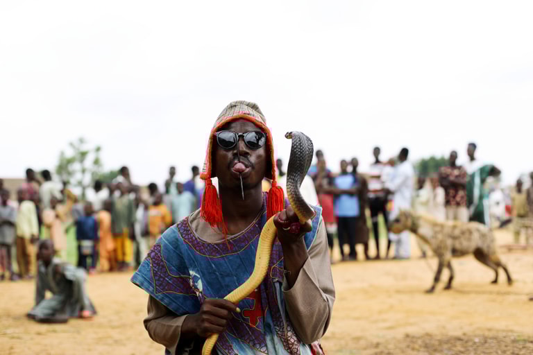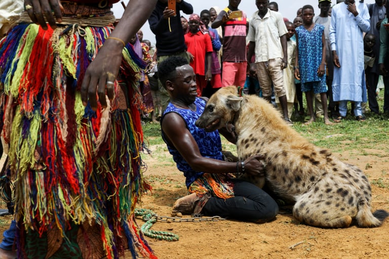在奈及利亞北部,當地有著一項已經傳承數百年的職業——馴服和豢養本該在野外自由生存的鬣狗,訓練牠們成為表演者、或甚至利用牠們的糞便和唾液製成治病秘方的「鬣狗人」(hyena men)。