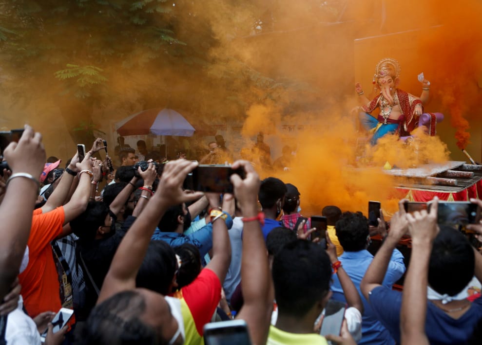 為期 10天的象神節是印度教的重要節日,這天信徒們會舉辦盛大儀式,慶祝這位象徵智慧、好運之神的誕生。儀式最後,人們會高喊「象神萬歲,我們明年再見」(Pudachya Varshi Lavkar Ya)的口號,將象神雕像扛到水邊浸泡,祈求來年平安順利。