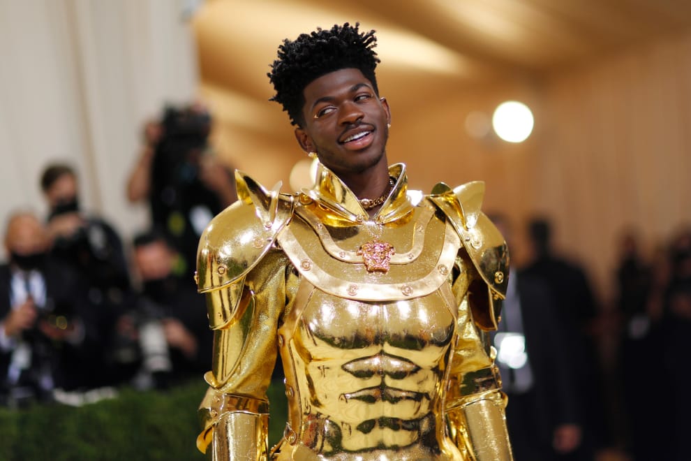 在美國紐約市,美國饒舌歌手納斯小子(Lil Nas X)穿上一身金色盔甲,盛裝出席大都會藝術博物館的慈善晚宴(Met Gala)。