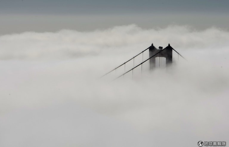 來到這邊,常有的觀光方式都是在天光大好的時候,搭乘郵輪從橋下經過,像是這樣霧鎖大橋的景象,反而比較少見!圖片來源:Justin Sullivan/Getty Images