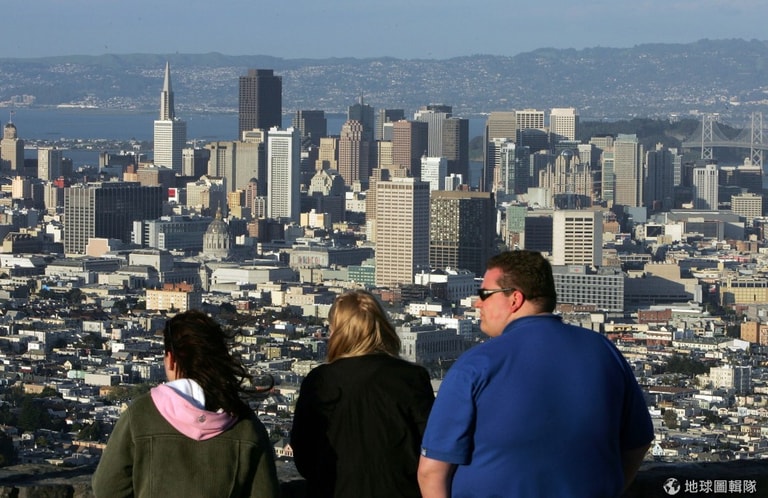 從「雙子峰」(Twin Peaks)往市中心眺望,也是很不錯的選擇,往西可以看到太平洋、往東可以看到奧克蘭,這邊讓人一次飽覽舊金山許多主要建築物!圖片來源:Justin Sullivan/Getty Images