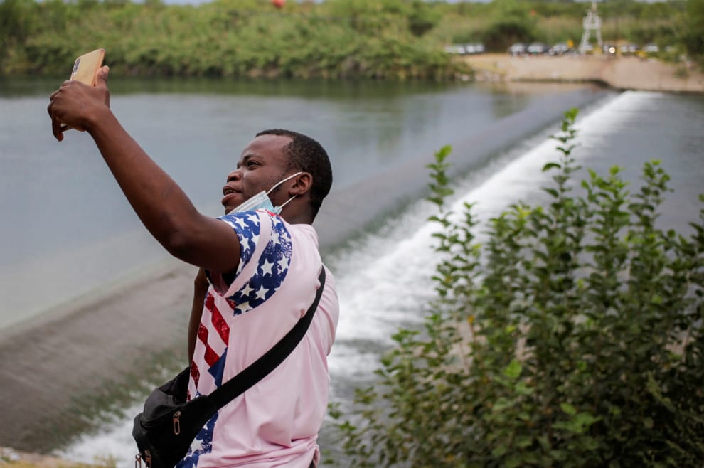 在邊境城市阿庫尼亞(Ciudad Acuna),一名正打算跨越格蘭河(Rio Grande river),並前往美國德州德利奧(Del Rio)尋求庇護的移民,於出發前用手機拍了幾張自拍當作紀念。