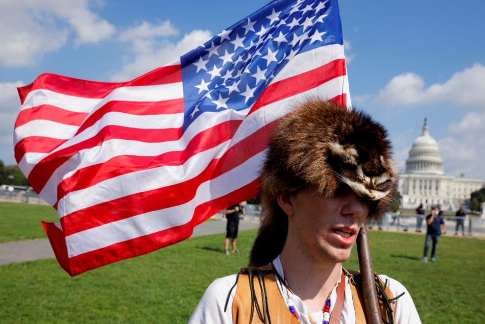 而在本月 18號,部分民眾來到了國會大廈外頭,表達自己對這些被起訴之人的支持。畫面中,這名戴著浣熊帽、扛著美國國旗的男子,正在跟記者表示自己相信前總統川普才是總統大選的真正得勝者,但他的勝利卻被他人以詐欺的方式奪走了。