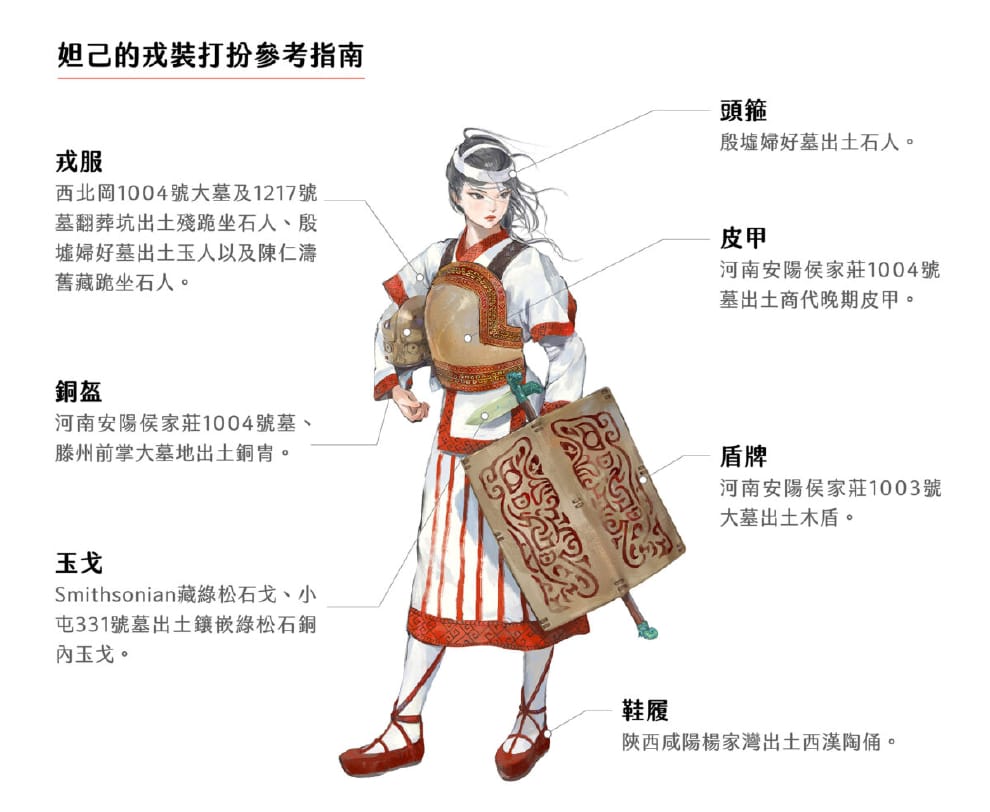 根據這些考古資料,建構出的妲己不再是影劇版的絕世妖姬,而是戎裝披甲、手持戈盾的帥氣將軍!