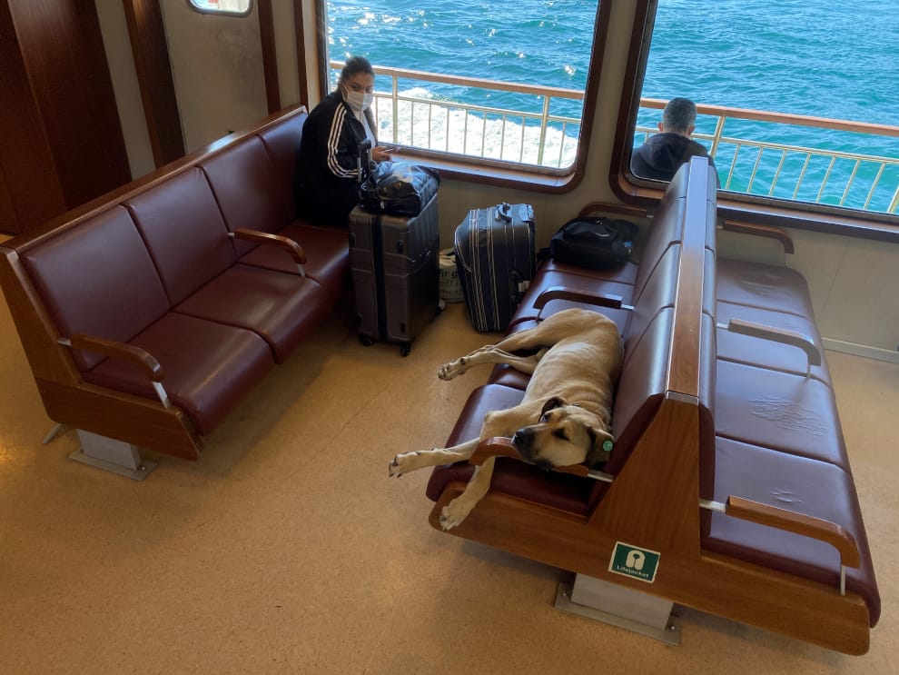 在伊斯坦堡(stanbul),流浪狗波吉(Boji)是通勤渡輪、巴士、地鐵和路面列車的忠實乘客之一。畫面中,波吉正搭乘往來伊斯坦堡歐亞兩端的渡輪,在船中的座位上迎著海風呼呼大睡。