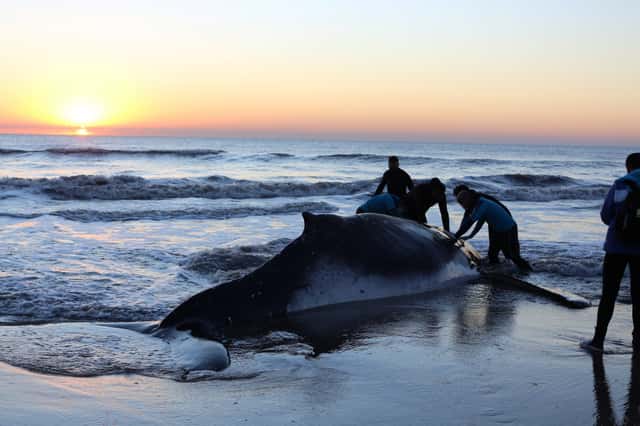 在布宜諾斯艾利斯省的路西拉德瑪爾小鎮(Lucila del Mar),一頭座頭鯨不幸於海灘擱淺,獲報趕到的民間救援人員在當地政府機關的協助下,準備以束帶和重型挖掘機將鯨魚抬到足以於水中自由漂浮的深度,再讓牠自行游回大海。