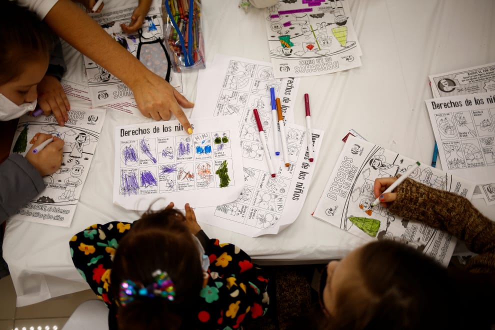 在美墨邊境的華雷斯城(Ciudad Juarez)的「我們都是墨西哥人」(Todos somos Mexicanos)健康中心裡,打算前往美國申請難民資格的家長正與孩子們一起埋首畫畫。這個繪圖活動是「我們都是墨西哥人」健康中心響應「世界心理健康日」(World Mental Health Day)所舉辦的活動。