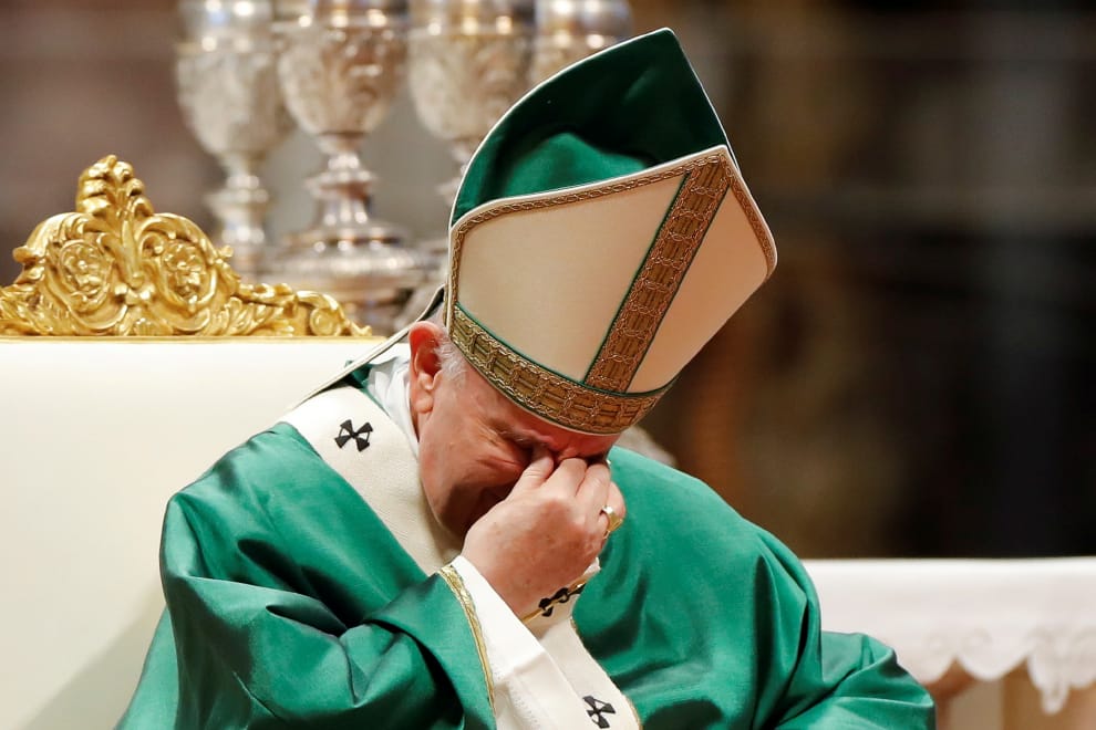 在梵蒂岡城裡,教宗方濟各(Pope Francis)正在主持一場為後續主教會議祝福的彌撒。彌撒進行中,似乎有些疲憊的他,忍不住揉了幾下自己的山根。