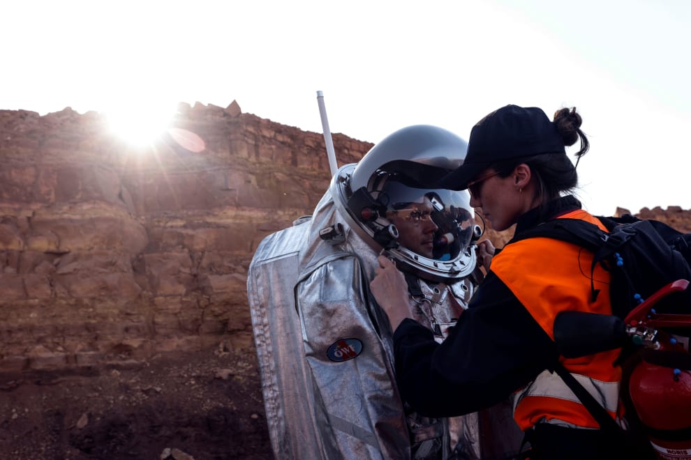 在以色列南部、位於沙漠地區的小鎮米茨佩拉蒙(Mitzpe Ramon),最近以色列和奧地利的太空單位攜手在這裡舉辦了一場火星任務模擬實驗,其中一位報名參與的科學家在工作人員的協助下,穿上了一套完整的太空衣。